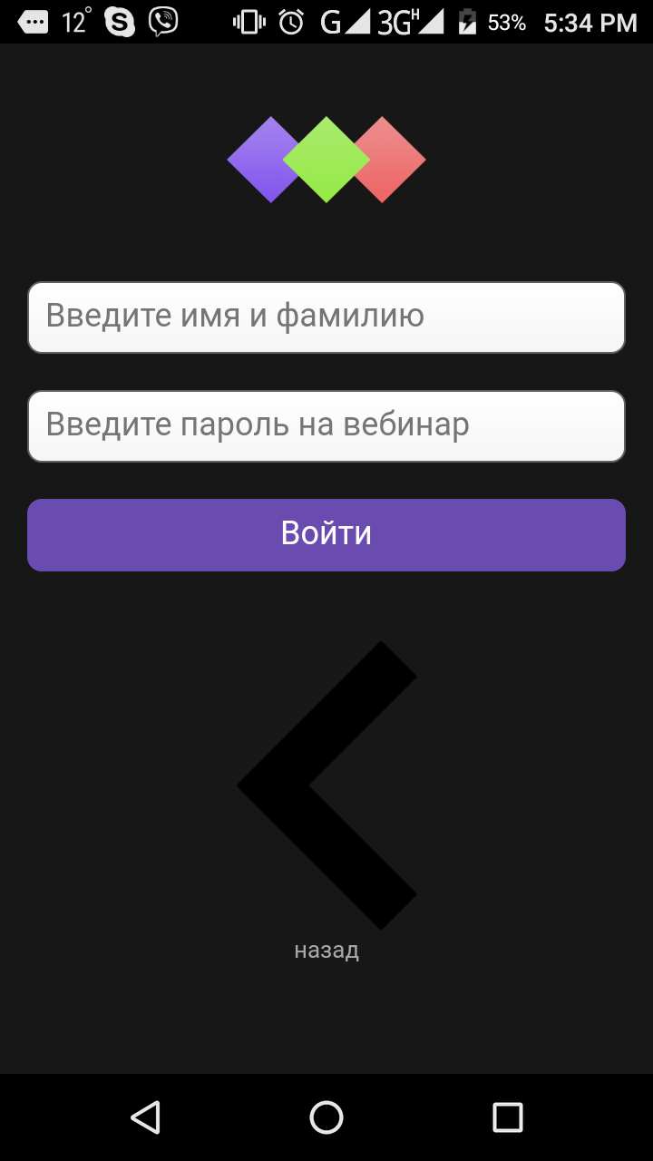 3. После установки вернитесь в наше приложение и снова нажмите на кнопку входа ниже. Ссылка откроется в приложении MyOwnConference и вы сможете войти по форме: